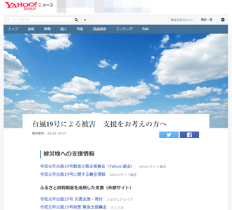 画像はYahoo!の台風19号被害の支援についてのページです。(画像をクリックしていただくと支援ページに行けるようになっています)