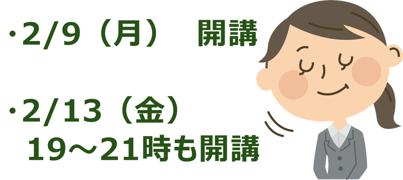 2月は28日間しかないのと祝日があるため、原則通りにはカレンダーを作れませんでしたので、以下の通り、例外で開講日を設定しています。
